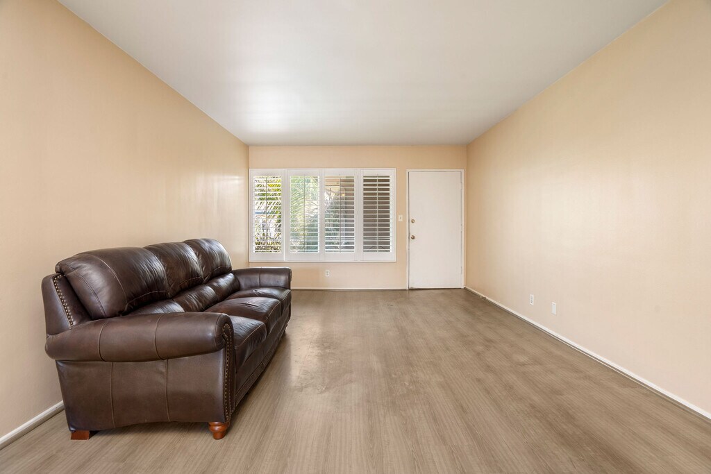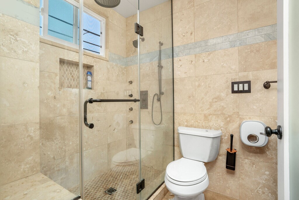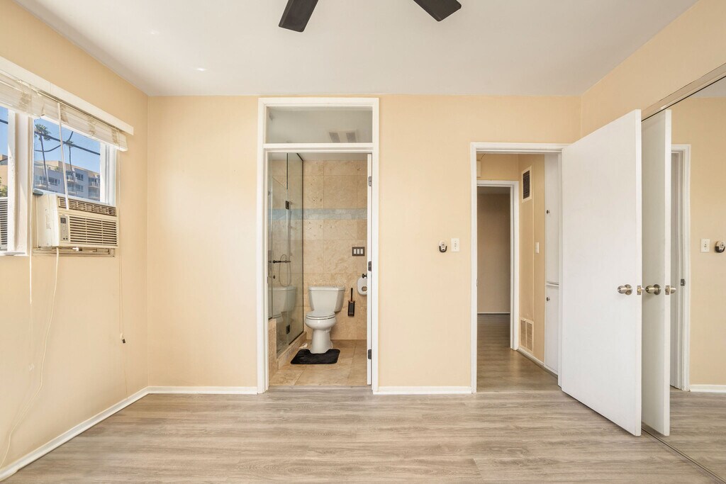 Tucked away in one of West Hollywood's most desirable pockets, this bright and beautifully upgraded 1-bedroom, 1-bath condo offers the perfect mix of style, comfort, and privacy. Perched on the top floor with no one above you, and privately located at the back of the building, this quiet retreat is bathed in natural light through large double-pane windows, complemented by wooden shutters and magnetic blinds for flexible ambiance.Step into a modern kitchen featuring rich wood cabinetry, elegant quartz countertops, and brand new LG stainless steel appliances perfect for both cooking and entertaining. The spa-like bathroom boasts a state-of-the-art shower with body jets, offering a luxurious start and end to your day.The bedroom is serene and functional, with a ceiling fan and a custom closet featuring beveled glass sliding doors. Stay comfortable year-round with a twin-duct A/C and heating system, and enjoy peace of mind with a secure 1-car garage, building-wide security cameras, and an upgraded intercom system