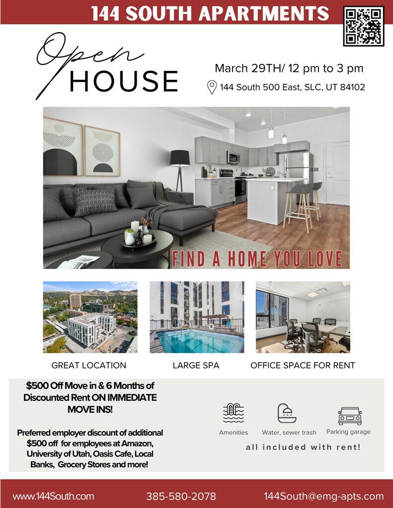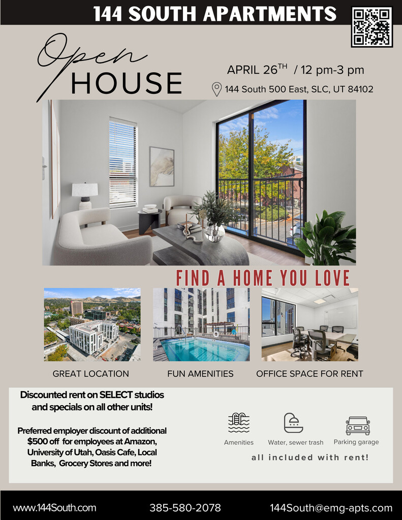 Live Where Luxury Meets Affordability — Right in the Heart of Salt Lake City! Welcome to our brand-new, income-restricted community offering affordable luxury in one of the city's most vibrant neighborhoods. For a limited time, take advantage of these unbeatable move-in specials: *Deposit Only $199 *Studios Starting at $999.00/month *$35 Application Fee WAIVED — Apply the same day! *Now Leasing Office Spaces! Get 1 Month FREE with a 6-month lease. Choose from cubicles, Zoom rooms, private offices & conference rooms Modern design, premium finishes, and a location that puts everything within reach. This is your chance to upgrade your lifestyle without breaking the bank. Don’t wait — these offers won’t last long. Schedule your tour today and discover your new home!