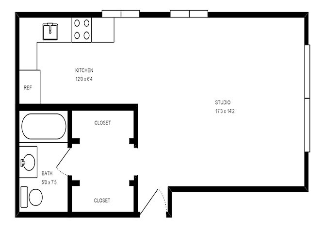 Modelo de apartamento: Studio1 Dormitorio, 1 Baño, 475 sq ftNo Disponible![]()