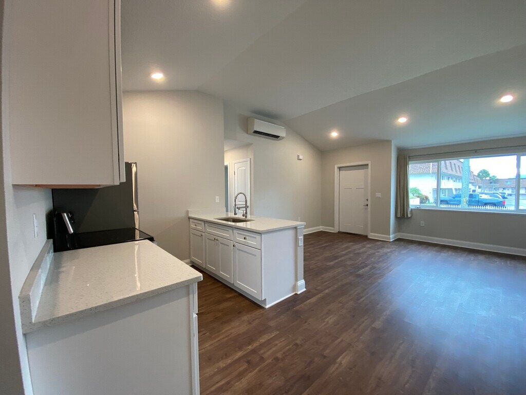 This unit have been completely renovated in 2025, Monthly Lease includes all utilities water, electric, wi-fi, trash, pest control, parking, landscaping. This property is located on Beachside, just walking distance to Florida’s most famous Daytona Beach, bandshell, local restaurant & pubs, unlimited entertainment, local bus lines for travel, and endless amounts of shopping. Interior design includes vaulted ceiling throughout, LVP flooring, white shaker cabinets w/ quartz countertops, beautiful, 12 inch shower tile. Showings are available upon request