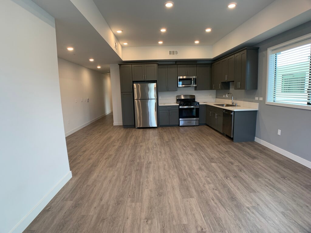 Welcome to Vanowen View, your ideal work from home living space. This newly constructed gem is centrally located in the heart of Van Nuys. This 1,185 sq. ft. loft style, two-bed/two-bath unit features all Stainless Steel appliances, in-unit washer and dryer, engineered flooring throughout, quartz counter tops, as well as your own private rooftop deck (approx.. 450 sq. ft.). With the building being three-stories high, from your private rooftop deck you will be able to enjoy incredible city views of the San Fernando Valley. •Washer and Dryer within units •450ft Private Decks with city views of the San Fernando Valley •Refrigerators within units •Stainless Steel Appliances •Quartz Countertops •Custom designed cabinetry •Hardwood Flooring (no carpet)