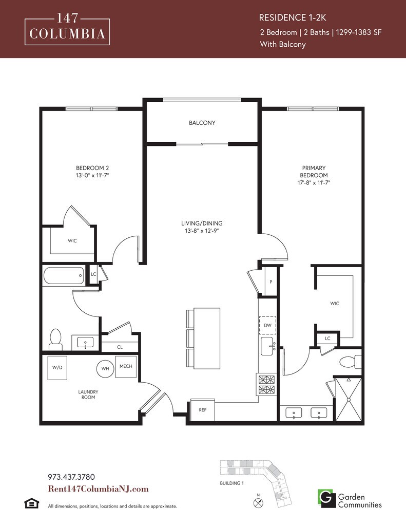 $2.88/sq.ft. - Residence 1-2K - Plano 1 Unidad de apartamento: APT8Modelo de apartamento: $2.88/sq.ft. - Residence 1-2KDesde $3,7952 Dormitorios, 2 Baños, 1299-1383 sq ftDisponible November 14, 2025$2.81/sq.ft. - Residence 1-2D