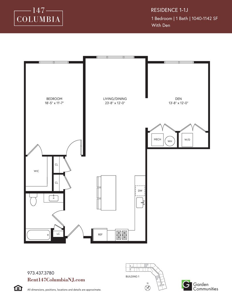 Modelo de apartamento: $3.11/sq.ft. - Residence 1-1J$3,5501 Dormitorio, 1 Baño, 1142 sq ftDisponible Ahora![]()