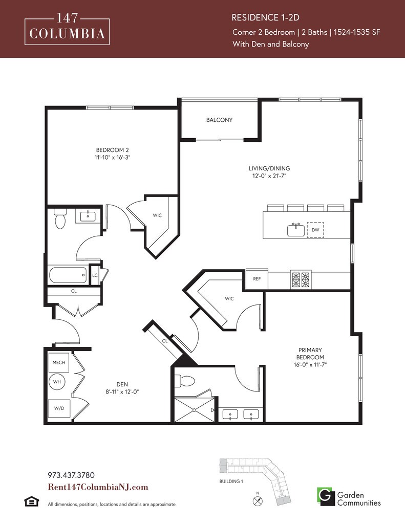 Modelo de apartamento: $2.81/sq.ft. - Residence 1-2D$4,3752 Dormitorios, 2 Baños, 1524-1535 sq ftDisponible November 14, 2025![]()