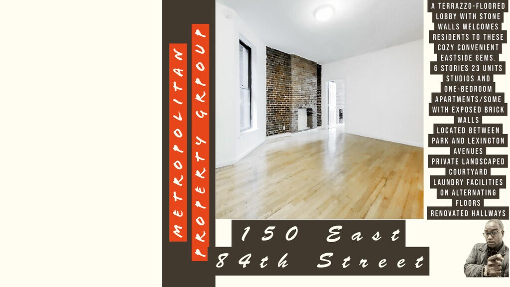Comodidades del edificio Un vestíbulo con suelo de terrazo y paredes de piedra da la bienvenida a los residentes a estas cómodas y acogedoras joyas del lado este. 6 pisos y 23 apartamentos Estudios y apartamentos de una habitación/algunos con paredes de ladrillo a la vista Ubicado entre Park y Lexington Ave Patio con jardín privado Instalaciones de lavandería en pisos alternos Pasillos renovados Distrito escolar PS 6 A pasos de Lexington Ave. y cerca de la parada 4 5 6 Express Gas incluido Elevador moderno y cabina de elvador