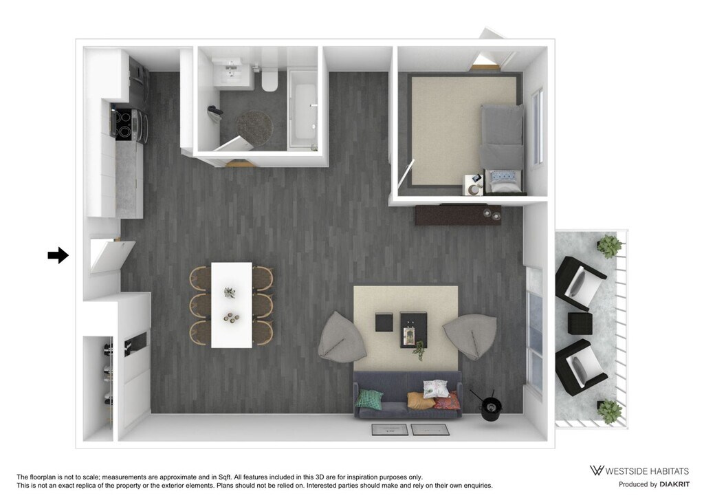 1 Dormitorio, 1 Baño, 550 pies²Disponible AhoraGalería del Modelo