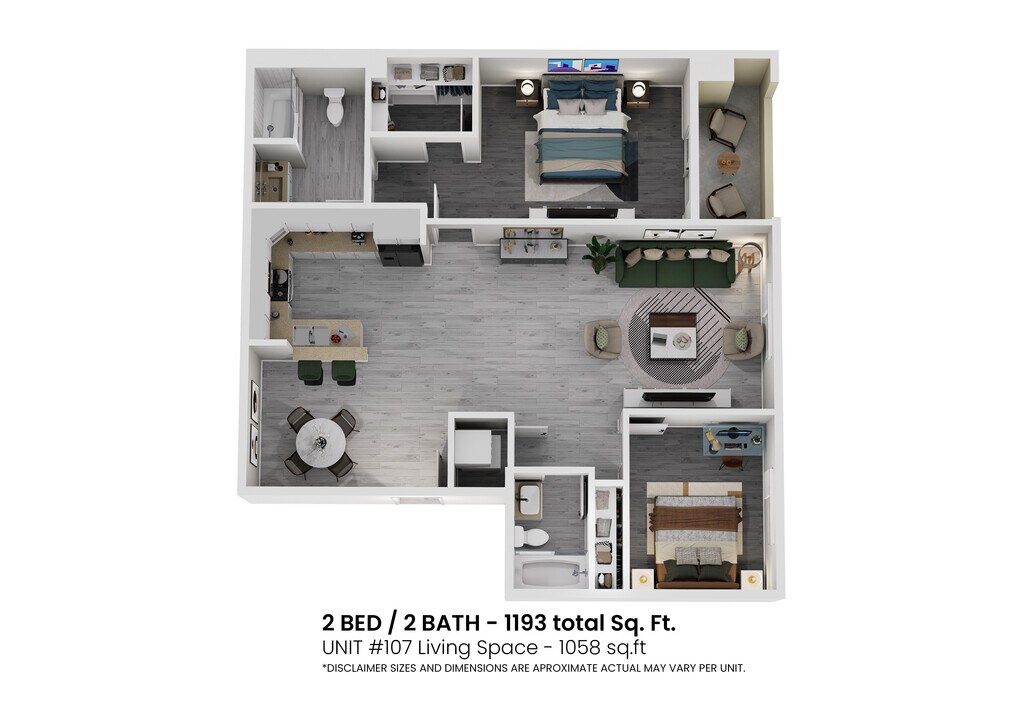 Unidad de apartamento: 107Modelo de apartamento: 2B$2,5952 Dormitorios, 2 Baños, 1139 sq ftDisponible Ahora
