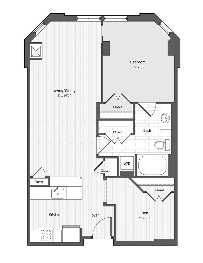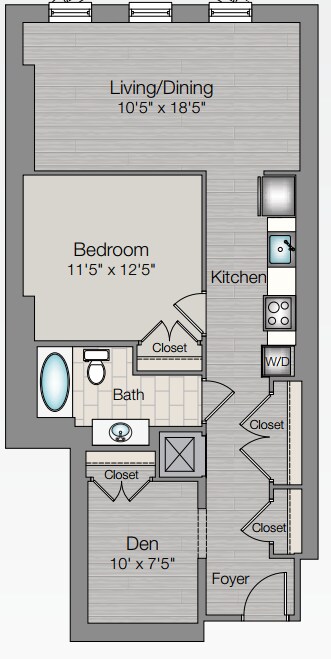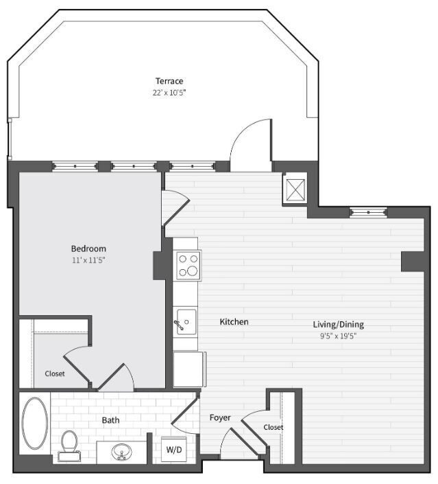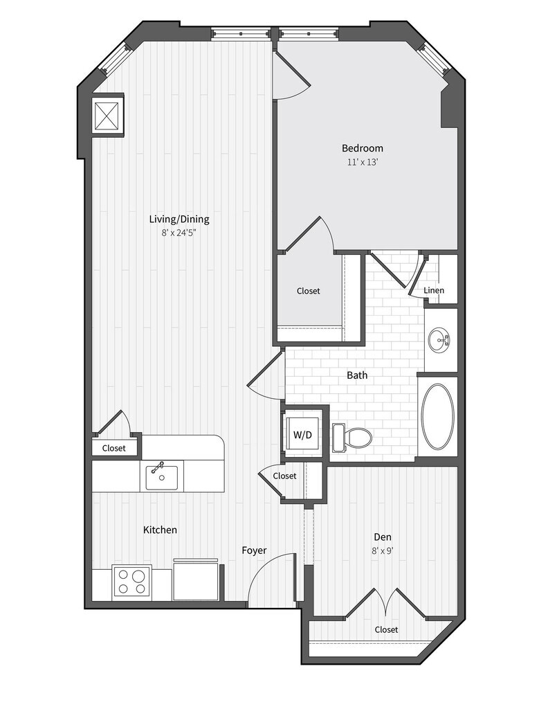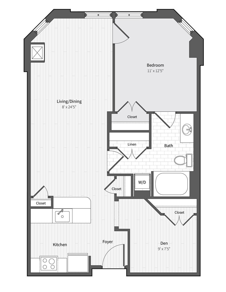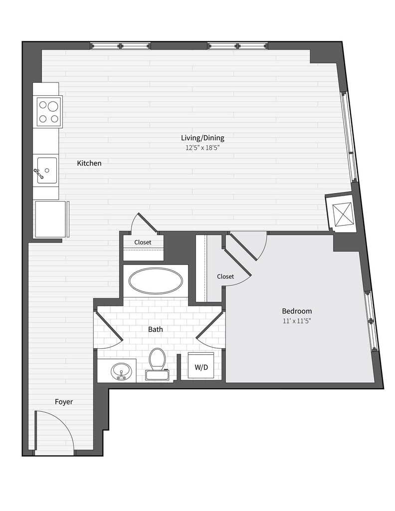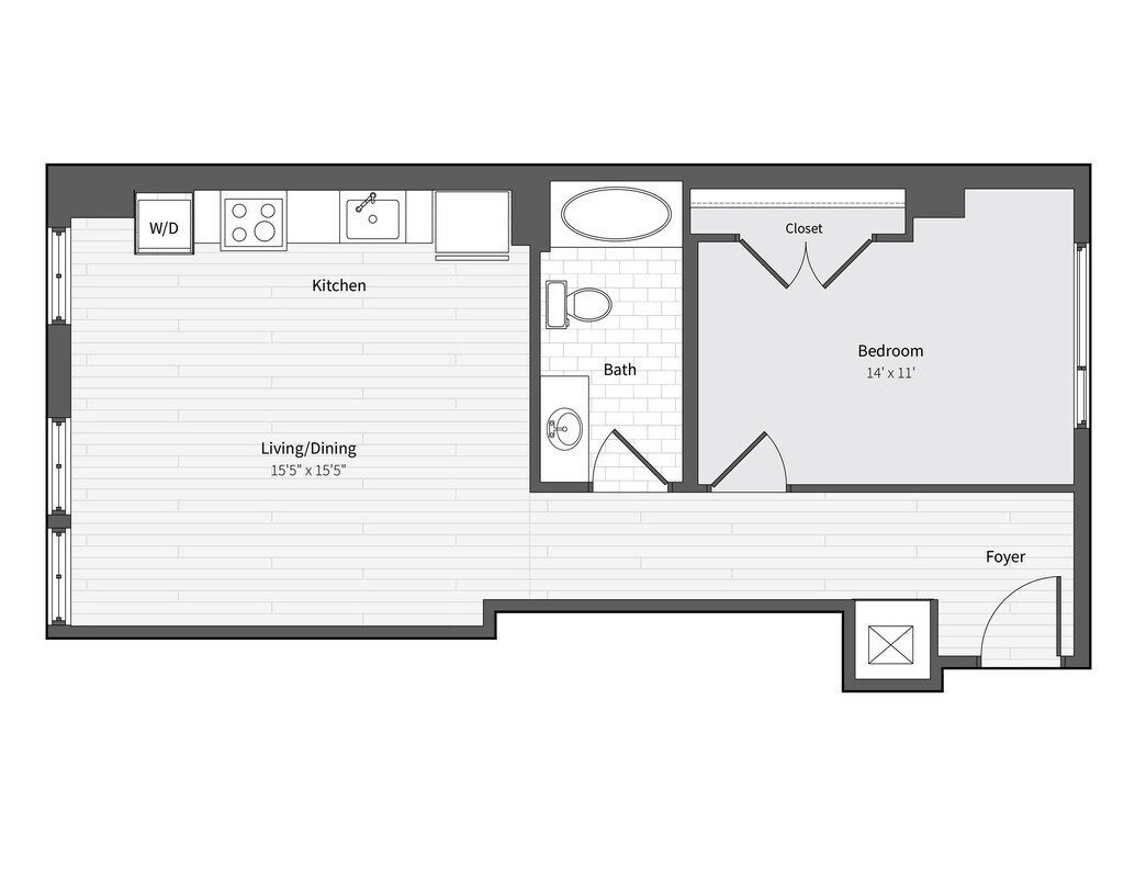 Modelo de apartamento: 01sa StudioLlame para PreciosEstudio, 1 Baño, 518 sq ftNo DisponibleLos planos de la planta son una interpretación artística. Todas las dimensiones son aproximadas. Los tamaños o el detalle del producto real y sus especificaciones pueden variar. No todas las características están disponibles en todos los hogares para rentar. Los precios y la disponibilidad están sujetos a cambios. El alquiler que se muestra es mensual. Se pueden aplicar ciertos cargos, por ejemplo, entrega de paquetes, recolección de basura, agua, servicios, etc. Depositos varian. Consulta a un representante para conocer detalles.