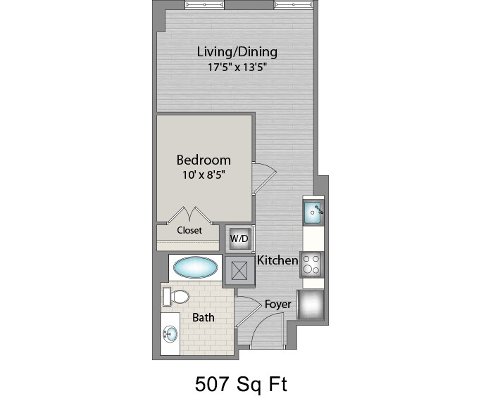 Estudio, 1 Baño, 500 pies²Disponible AhoraGalería del Modelo