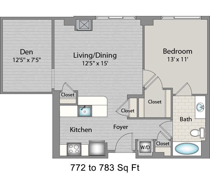 Estudio, 1 Baño, 600 pies²Galería del Modelo