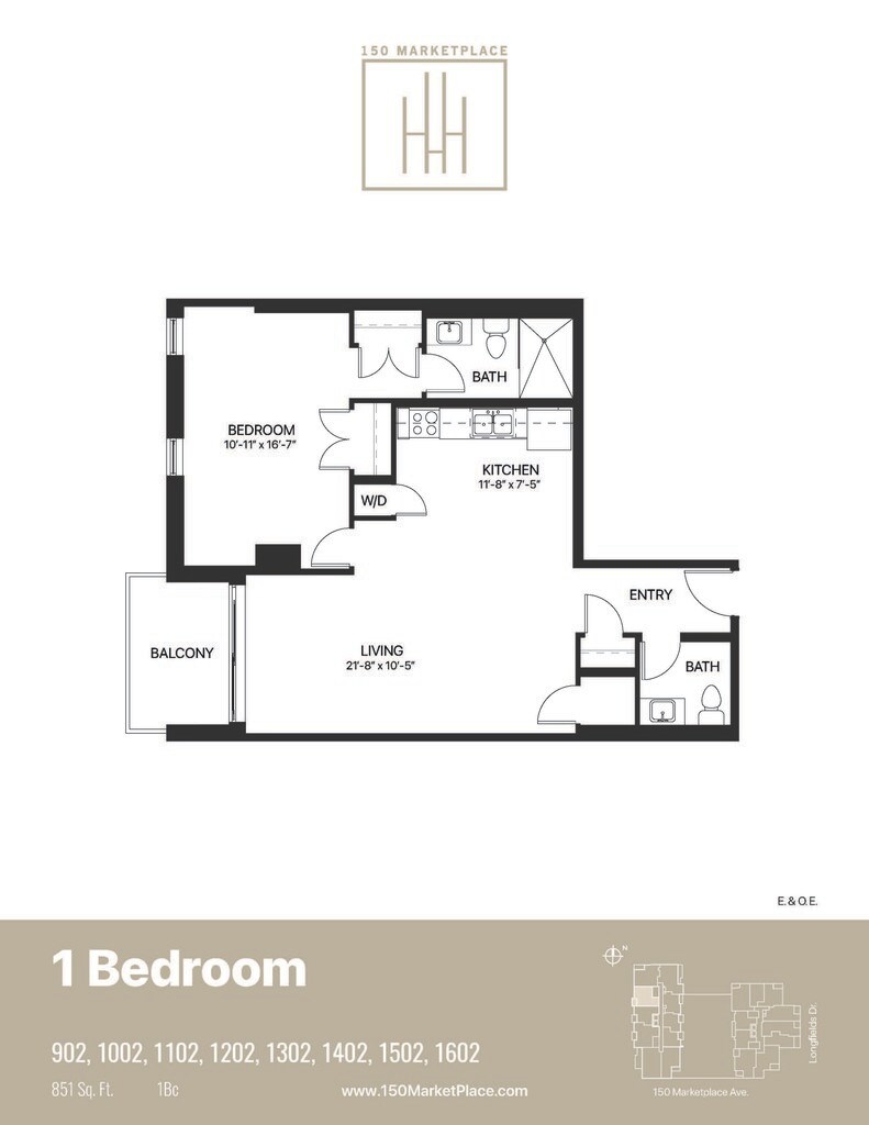 1 Dormitorio, 1 Baño, 851 pies²Disponible AhoraGalería del Modelo