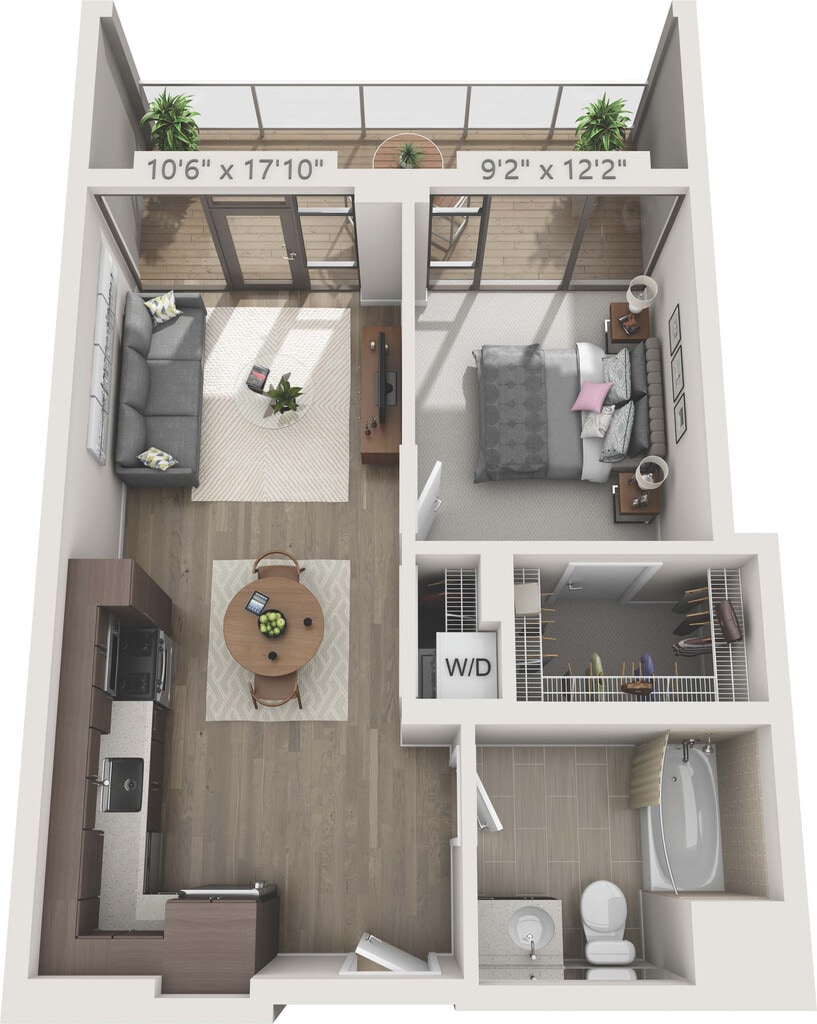 Estudio, 1 Baño, 463 pies²El más grandeEsta opción tiene las unidades más grandes para este modeloGalería del Modelo