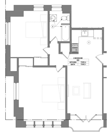 Modelo de apartamento: 1 Bed / 1 BathDesde $1,6551 Dormitorio, 1 Baño, 404-726 sq ftDisponible Ahora![]()