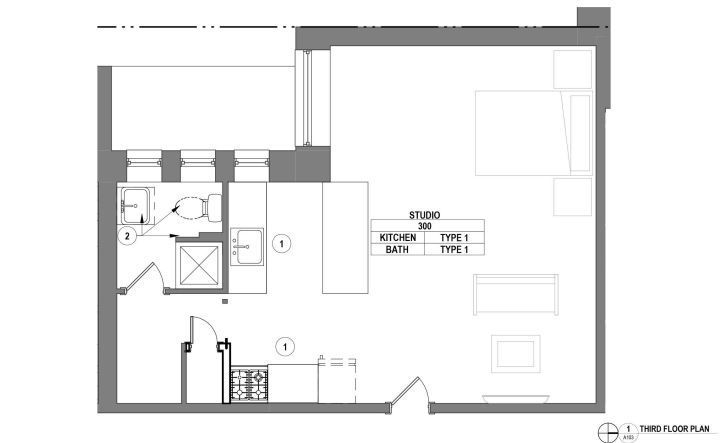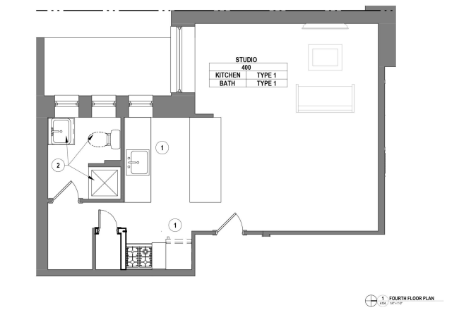 Estudio, 1 Baño, 291-424 pies²Disponible AhoraGalería del Modelo