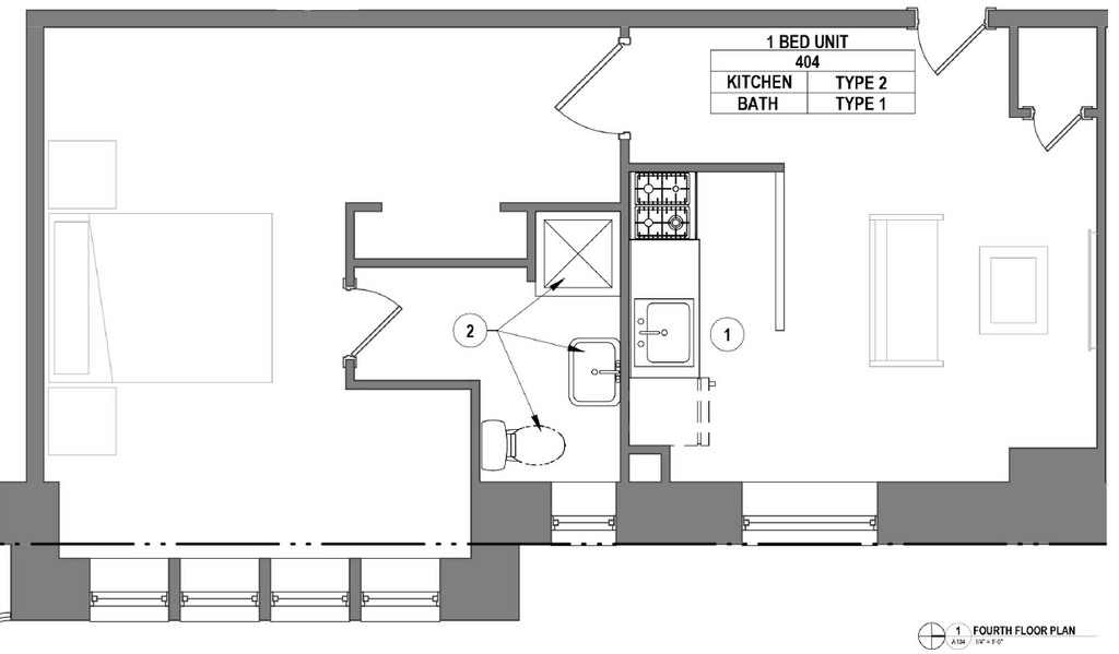 1 Dormitorio, 1 Baño, 404-726 pies²Disponible AhoraGalería del Modelo
