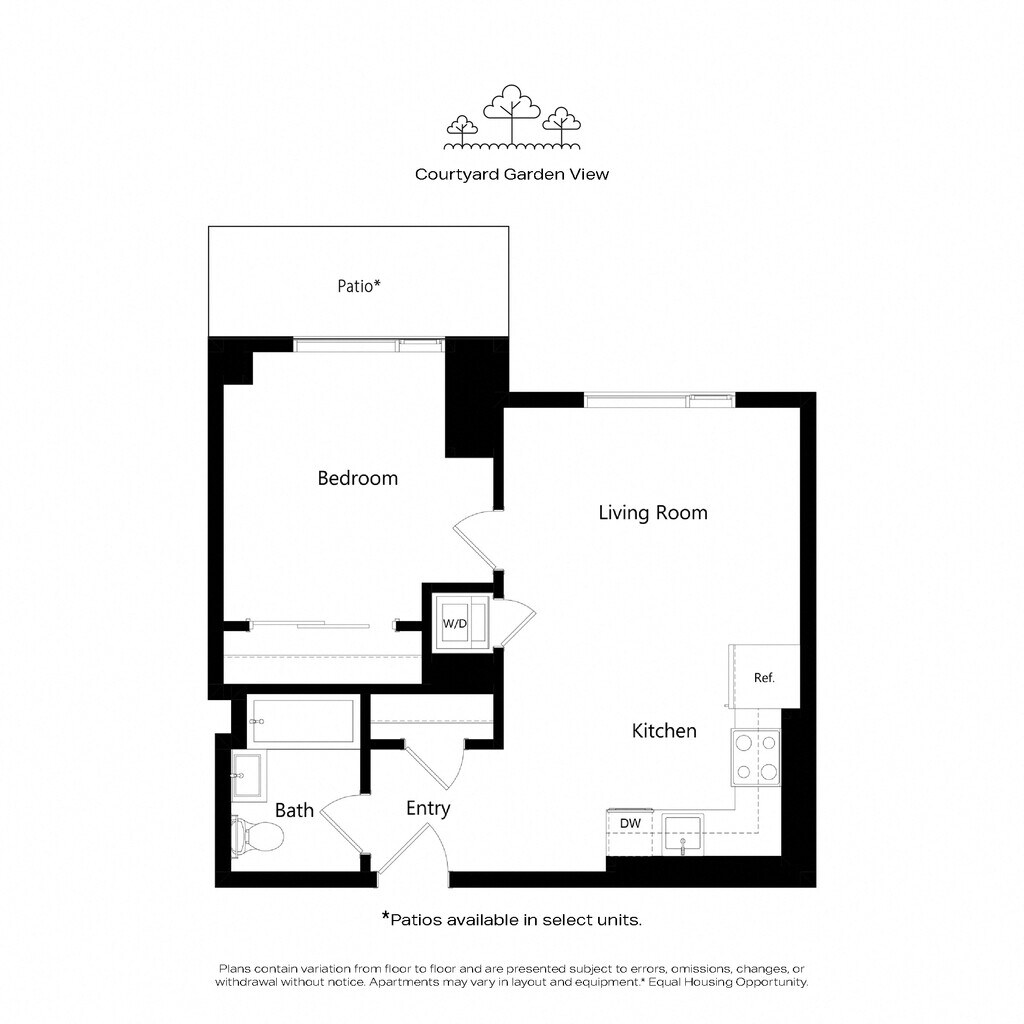A012 - Plano 1 Unidad de apartamento: 0335Modelo de apartamento: A012$2,8401 Dormitorio, 1 Baño, 591 sq ftDisponible AhoraPlano: A05