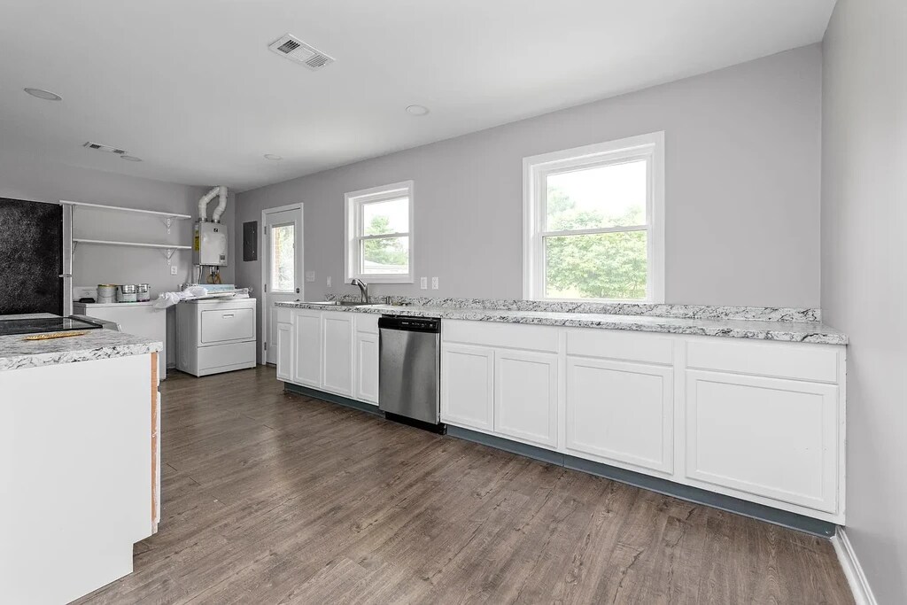 Enjoy a fully renovated home with all landscaping and lawn care included at 1520 Thames Drive in Lexington, Kentucky. Located in the quiet and established River Park neighborhood, this beautifully reimagined three-bedroom, one-bath brick ranch blends modern comfort with unbeatable convenience. Originally built in 1971 and recently taken down to the studs, the home now features an open-concept layout filled with natural light, stylish new laminate flooring throughout, and a completely updated eat-in kitchen with modern finishes. The redesigned bathroom includes a luxurious jetted tub and crisp white subway tile. Outside, the nearly half-acre corner lot offers a private fenced backyard and a cozy patio ideal for outdoor relaxation or entertaining. Situated just off New Circle Road and Tates Creek Boulevard, this home is minutes from Lexington's best attractions, including Keeneland Race Course, the Kentucky Horse Park, and Raven Run Nature Sanctuary. Downtown Lexington is just a short drive away, offering dining, shopping, entertainment, and access to cultural landmarks like Rupp Arena and the Arboretum. Mandatory lawn care and landscaping fee is $200/mo. Total monthly rent payment is $2,050/mo. Renter is pays for all utilities.