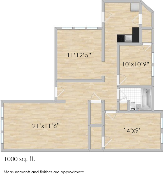 2 Dormitorios, 1 Baño, 1000 pies²Galería del Modelo
