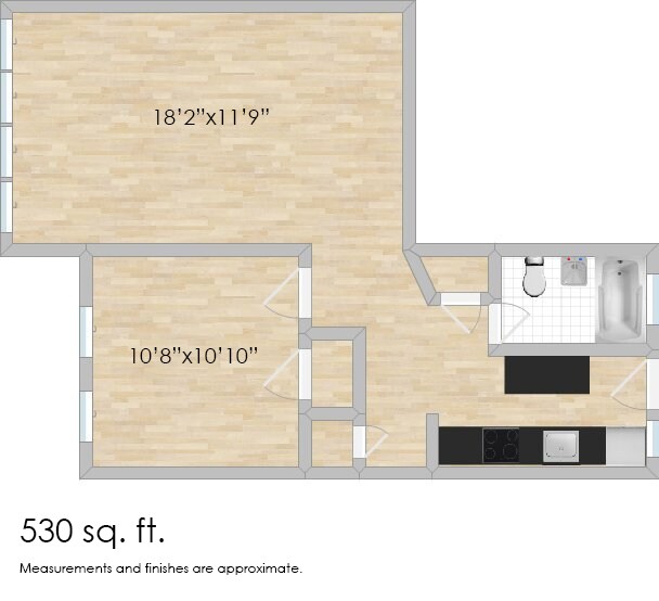 Estudio, 1 Baño, 530 pies²Detalles de Diponibilidad