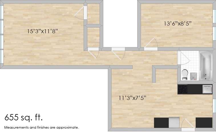 1 Dormitorio, 1 Baño, 655 pies²Galería del Modelo