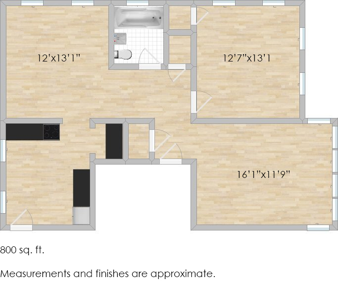 1 Dormitorio, 1 Baño, 800 pies²El más grandeEsta opción tiene las unidades más grandes para este modeloGalería del Modelo