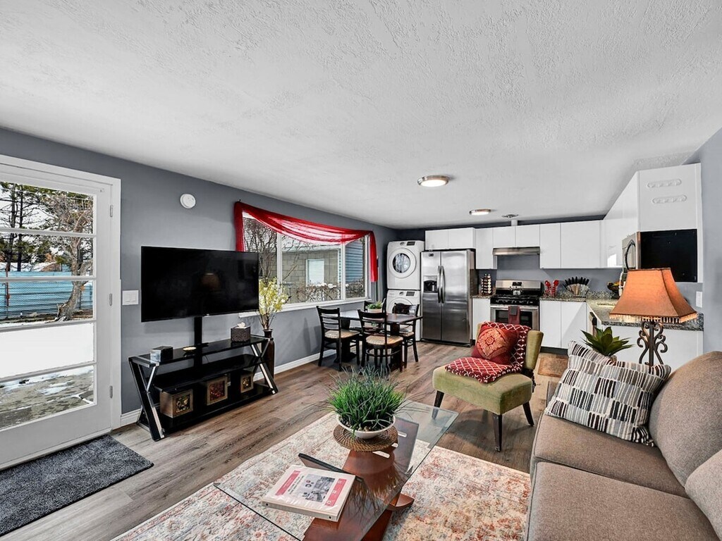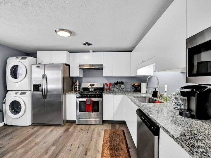Servicios públicos incluidos (agua, energía, gas, alcantarillado/basura, Internet) Unidad trasera en casa dividida - entrada hacia el patio trasero Electrodomésticos de acero inoxidable, incluida una estufa de gas Combinación de lavadora y secadora Con encimera de granito Suelos de madera dura (sin alfombra) Luces LED Entrada sin llave Estacionamiento sin techo para hasta 2 vehículos normales A 5 minutos en automóvil de 3 entradas diferentes