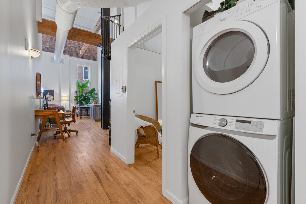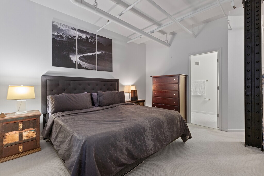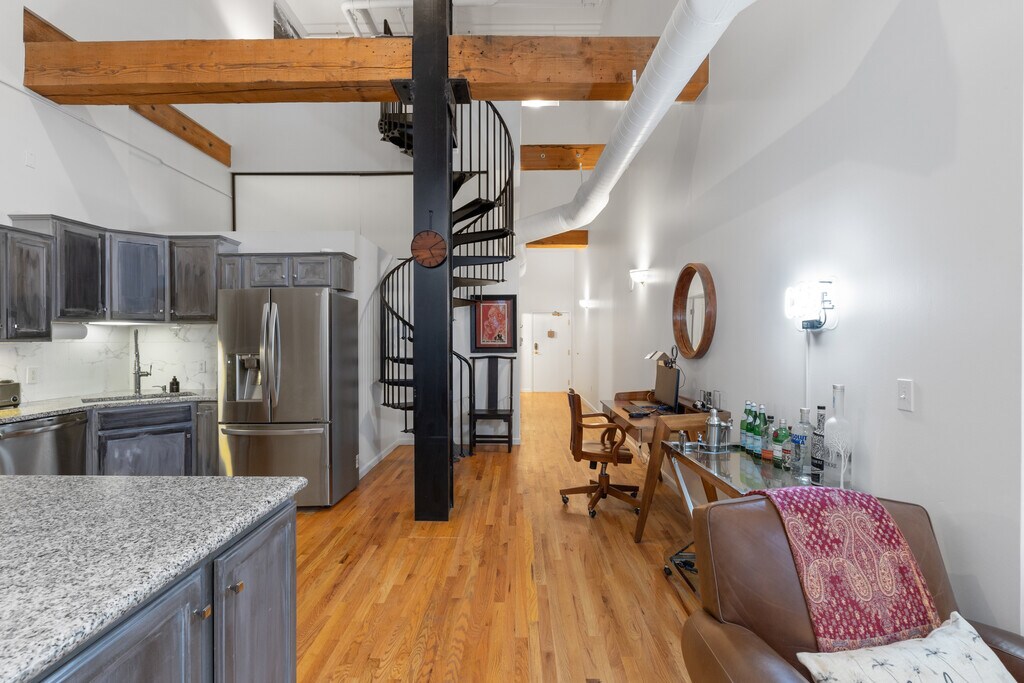 Set within one of Denver's most architecturally significant landmarks, this two-story loft offers an extraordinary opportunity to live in a piece of the city's history reimagined for modern life. Built in 1880 and expanded in 1924, the Denver Dry Goods Building was once the largest department store west of Chicago. Designed by the architect of the Brown Palace Hotel, it now features unique residences that blend industrial heritage with modern comfort. Located on the quiet fourth floor, this rare loft spans two thoughtfully designed levels and is defined by dramatic architectural gestures: soaring 25-foot ceilings, original exposed brickwork, timber and steel beams and an iconic spiral staircase that anchors the space with a sculptural presence. Oversize windows invite generous natural light enhancing the sense of volume and calm throughout. The home's layout combines functionality with elegance, offering two bedrooms, each equipped with walk-in closets, two full bathrooms one on each level and open-plan living spaces that accommodate both entertaining and private relaxation. Modern updates including granite countertops, backsplash, stainless steel kitchen appliances, and undermount sinks with designer faucets offer ease and refinement without compromising the building's character. Residents have access to amenities such as secure entry, a rentable guest suite, fitness center, storage unit, bike storage, and one reserved garage parking space, with additional spaces available for a fee. Enjoy the best of urban living: You're just steps from 16th Street. Sip on a cocktail on the rooftop at 54 thirty, enjoy French cuisine at Chez Maggy, see a Broadway musical at the Denver Center for the Performing Arts, watch a movie at Denver Pavilions, marvel at the art and architecture at Denver Art Museum, catch the Rockies at Coors Field or Avs/Nuggets at Ball Arena, bike the Cherry Creek Trail. Commuting is effortless with quick access to the Free Ride, Light Rail, and Union Station, which provides direct service to Denver International Airport.
