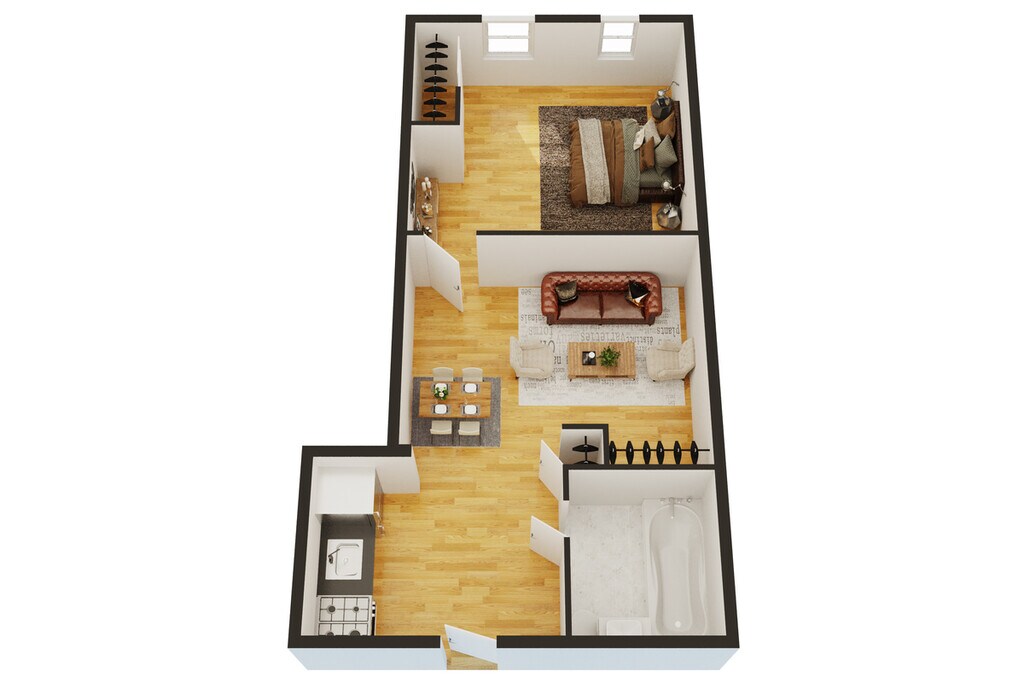 1 Dormitorio, 1 Baño, 425 pies²Galería del Modelo