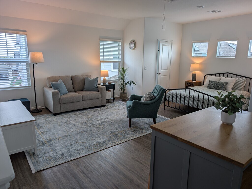 ¡Nuevo diseño! ¡Nunca vivió! Por encima del garaje, apartamento estudio. Plum Creek North en Kyle. ¡Bella luz natural! Lavadora y secadora en el apartamento. ¡Todos los electrodomésticos son nuevos! Servicios públicos pagados por el propietario (gas, electricidad, agua, basura, HOA). El arrendatario solo paga por Internet. No se admiten mascotas ni fumadores. En la unidad, acceso al ático para almacenamiento. Estacionamiento en la calle frente a la casa. No hay acceso al garaje para el arrendatario. El acceso a los servicios del vecindario incluye: piscina, patio de juegos, parque. Requisitos: Un mes de alquiler como depósito. No se admiten mascotas ni fumadores Los propietarios pagan los servicios públicos mensuales; Internet es lo único que el inquilino tiene que organizar y pagar. El arrendatario deberá adquirir un apartado de correos para su correo; la oficina de correos está a 6 minutos de la unidad.