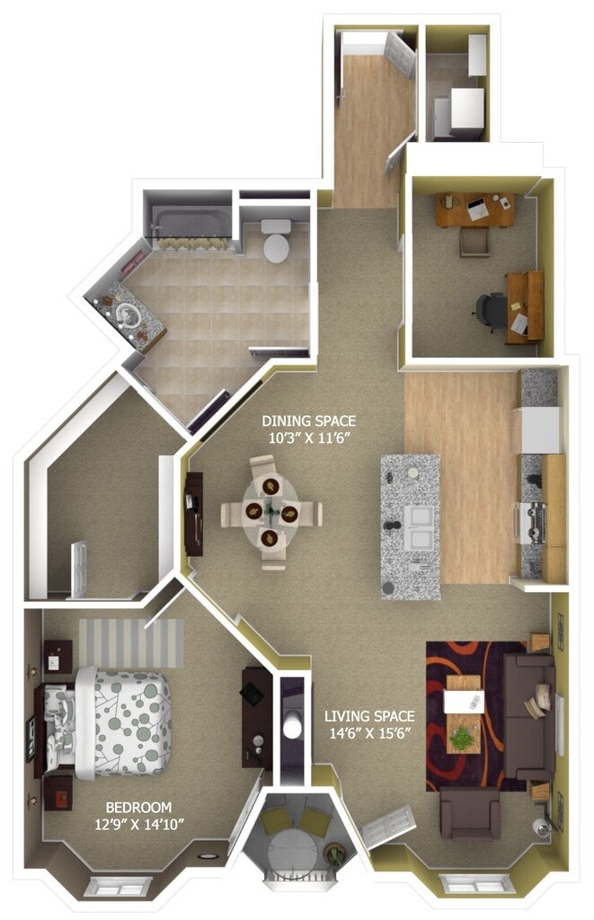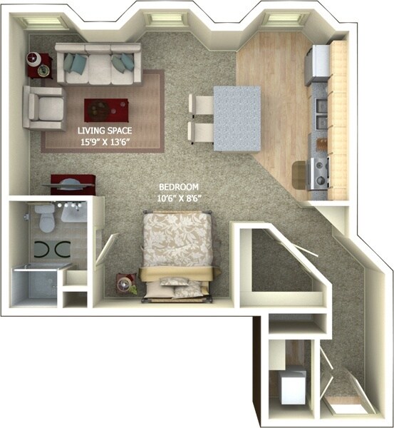 Modelo de apartamento: A1Desde $1,430Estudio, 1 Baño, 618 sq ftDisponible AhoraLos planos de la planta son una interpretación artística. Todas las dimensiones son aproximadas. Los tamaños o el detalle del producto real y sus especificaciones pueden variar. No todas las características están disponibles en todos los hogares para rentar. Los precios y la disponibilidad están sujetos a cambios. El alquiler que se muestra es mensual. Se pueden aplicar ciertos cargos, por ejemplo, entrega de paquetes, recolección de basura, agua, servicios, etc. Depositos varian. Consulta a un representante para conocer detalles.