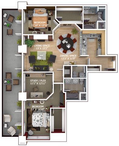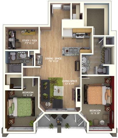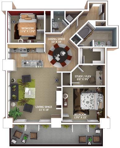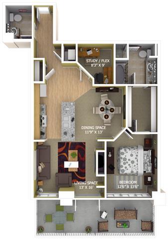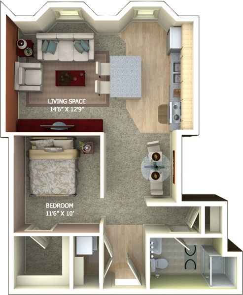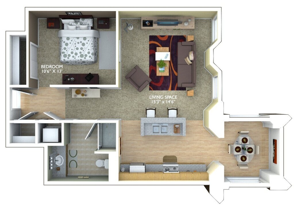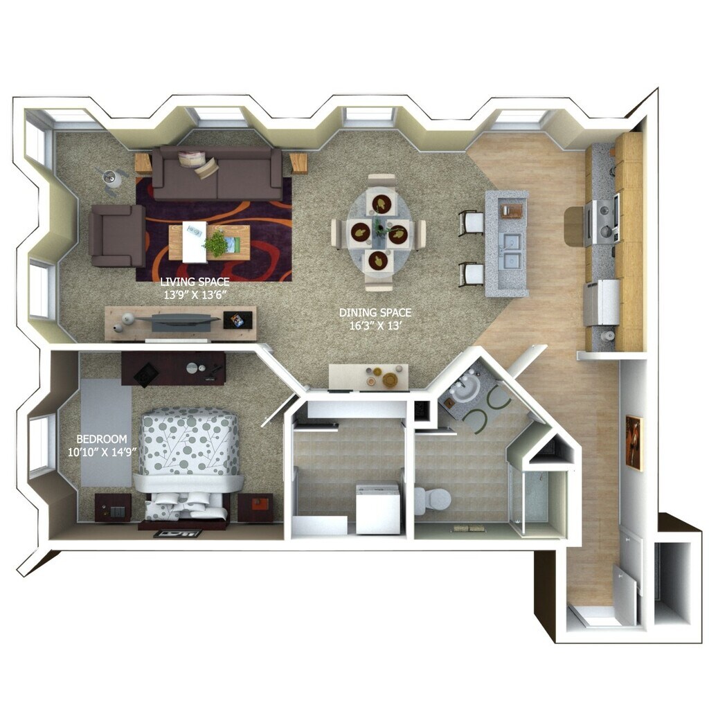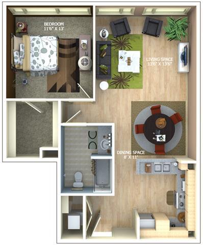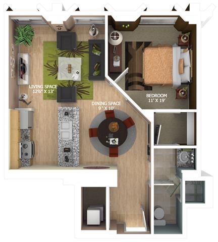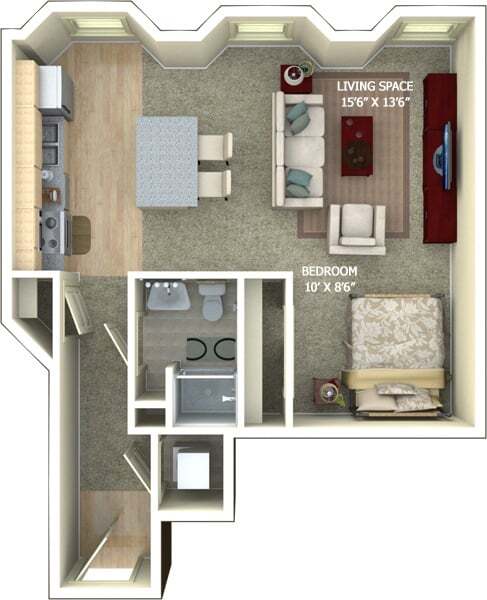 Estudio, 1 Baño, 618 pies²Disponible AhoraGalería del Modelo