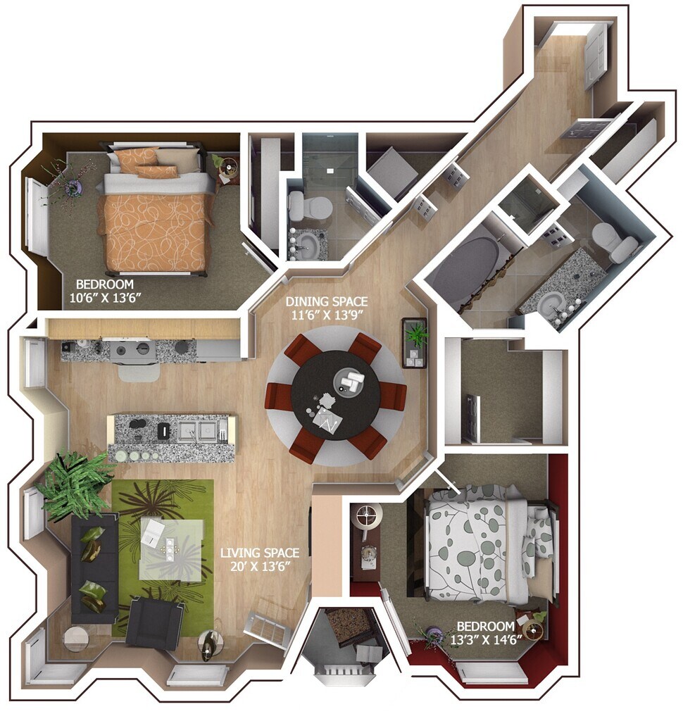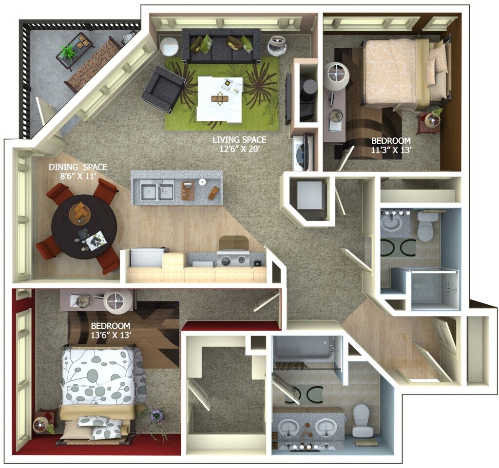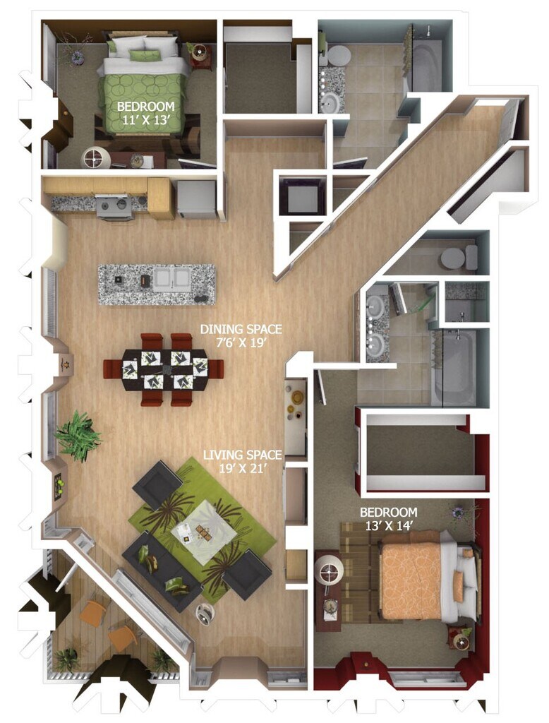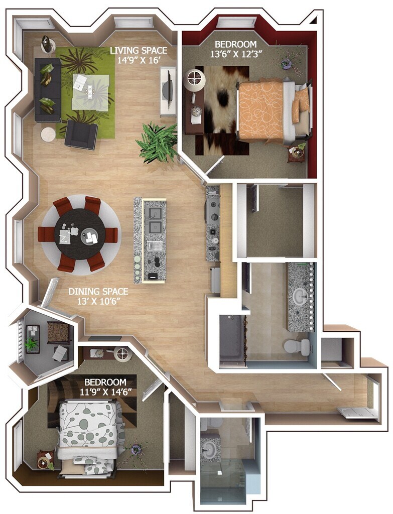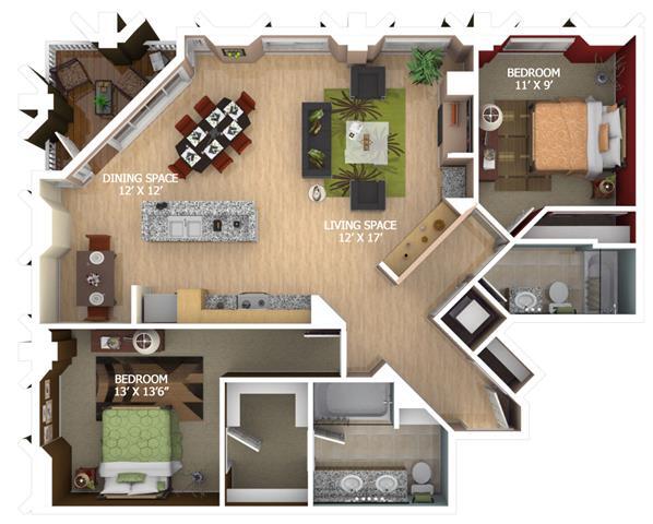 Estudio, 1 Baño, 618 pies²Disponible AhoraGalería del Modelo