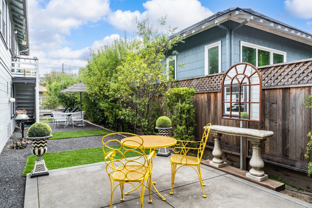 Alameda is an incredibly desirable California community to call home, characterized by the presence of San Francisco Bay, beaches , ferries and waterways, hiking & bike paths, quaint shops and restaurants and many beautiful historical homes. Come home to relax in the property's garden with furnished patio! Barbecue if you like! Its a quick commute to SF, Oakland, Emeryville, and the airport! This fabulous residence is located in a prime area along Alameda's "Gold Coast" border! Elegant details from the past have been preserved while beautifully updating kitchen and bath.Shared Backyard with furnished patio. Special ambiance in spacious living room created by large windows, large windows on three sides with lovely sunlight throughout the day, custom shades of paint, dark hardwood floors and fabulous light fixtures. Long chef's kitchen features high BTU gas range with chimney hood, Quartz stone counters, recessed lighting,Goose Neck pull out faucet, lovely wood cabinetry and quartz counters. Ample counter space and kitchen storage! Beautiful hard wood floors throughout! Spacious bedroom and lovely light fixtures. Good looking tiled bathroom with beautiful mahogany vanity.Tiled bath and tall mirrored wall cabinet complete the look. Washer and Dryer on site, coin operated. Garage parking and storage are available for a fee. Small apartment community- one fourplex and one duplex share grounds. Upgraded electrical, plumbing, heating and earthquake retrofits. Terrific location, 5 minutes to anywhere on the island- the beach, Park Street or Webster Street Shopping. Walk 3 minutes to catch a bus to San Francisco which is a short 20 minute ride! Major freeways are accessible within minutes. There is also a Bus to down town Oakland, and the BART station. Five minutes to downtown Oakland,10 minutes to Emeryville. Bikers paradise- All flat on the island! No smoking allowed on the premises. And please No pets. Details Lease: One Year Pets: No NO SMOKING, ANYWHERE ON PREMISES Laundry: on site Tenant pays their own utilities garage Parking ($85) and extra storage available for a fee Rent: $2495 per month Security Deposit $2495 one space of covered parking available for $85/month, no smoking of any substance on site, no pets. Tenant pays for utilities.