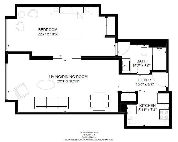 1 Dormitorio, 1 BañoDisponible AhoraGalería del Modelo