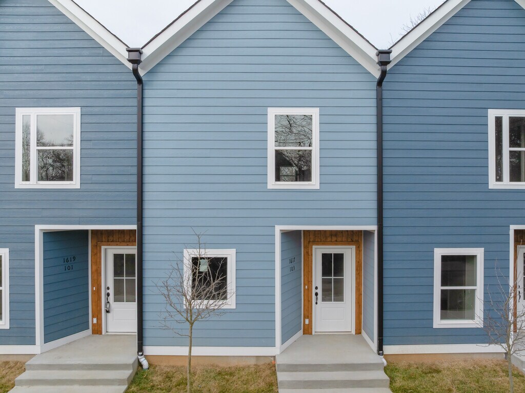 New construction end-unit townhome in the desirable Highland Park area, just minutes from downtown Chattanooga and conveniently located near hospitals, schools, shopping, and dining. This modern home features Hardie board siding, rear garage access, LVP flooring, recessed lighting, vinyl windows, and a private balcony. The entry level offers a foyer, garage access with washer/dryer hookups, and a flexible bedroom or office with a half bath. Upstairs includes an open living area and a stylish kitchen with quartz countertops, subway tile backsplash, stainless steel appliances, center island, and built-in desk area. A refrigerator will be added, and the cabinets already include modern handle bars. Move-in ready with a functional layout and contemporary finishes throughout. 1 unit is ready for move-in
