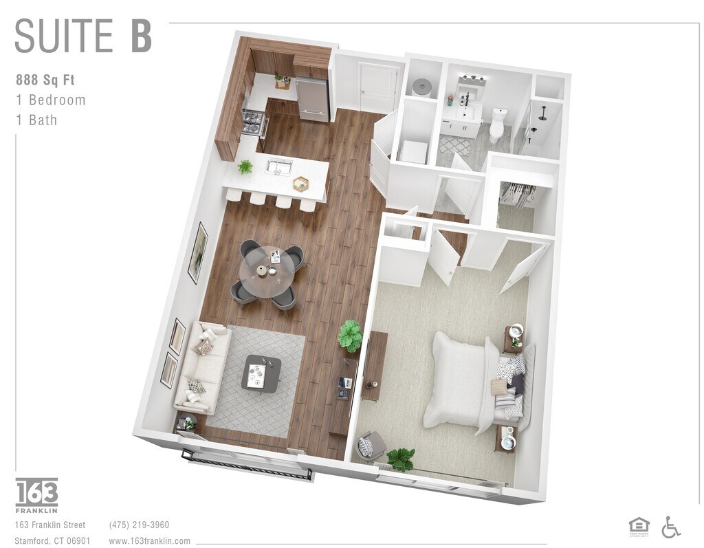 Modelo de apartamento: Suite ELlame para Precios1 Dormitorio, 1 Baño, 747 sq ftNo Disponible![]()