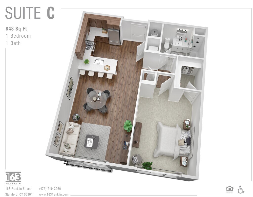 Modelo de apartamento: Suite L$2,9001 Dormitorio, 1 Baño, 887 sq ftDisponible December 6, 2025![]()