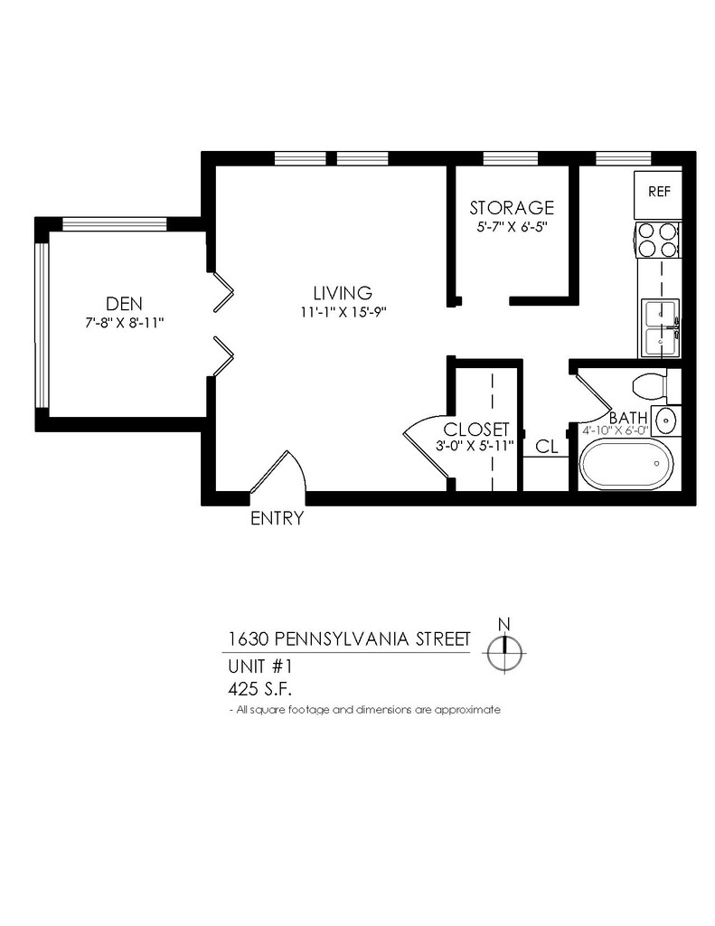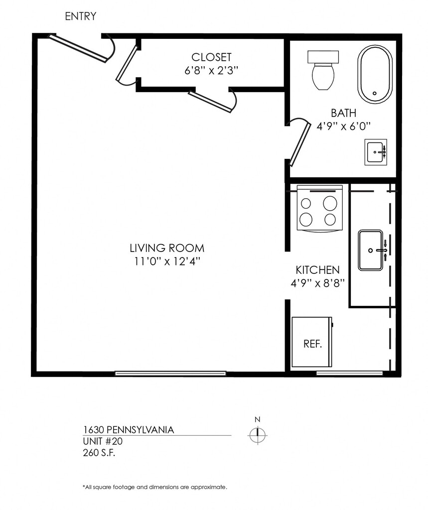 El rango de alquiler de Apartamentos estudio a 1 dormitorios en 1630 Pennsylvania van desde $995 a $1,125