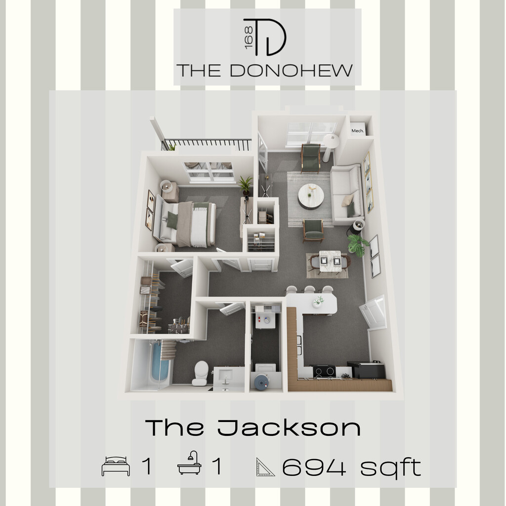 168 at The Donohew ofrece apartamentos de 1 a 2 Dormitorios desde $1,275 con 694–1,025 pies cuadrados. Aquí está el precio actual y la disponibilidad: