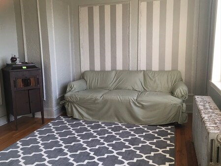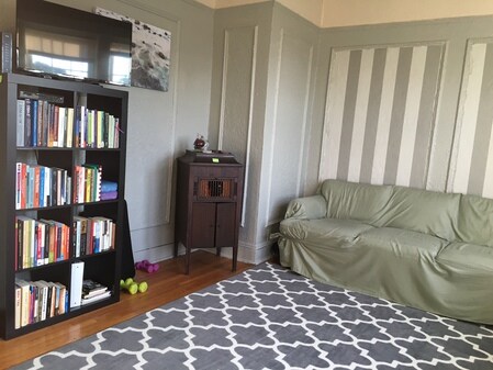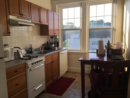Niza y sunny,large (1000sq.f) 2 habitaciones divididas con área común. Eat.in kitch.D/D,Gas cocina ,Micro. Encimeras de granito ,St. St. Ceil.fans,nice h-wd.fl.,mod. Baño,Large habitaciones del apartamento es abierto,
