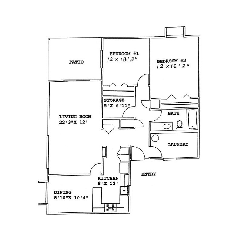 Modelo de apartamento: 16yb12 Dormitorios, 1 Baño, 1150 sq ftNo Disponible![]()