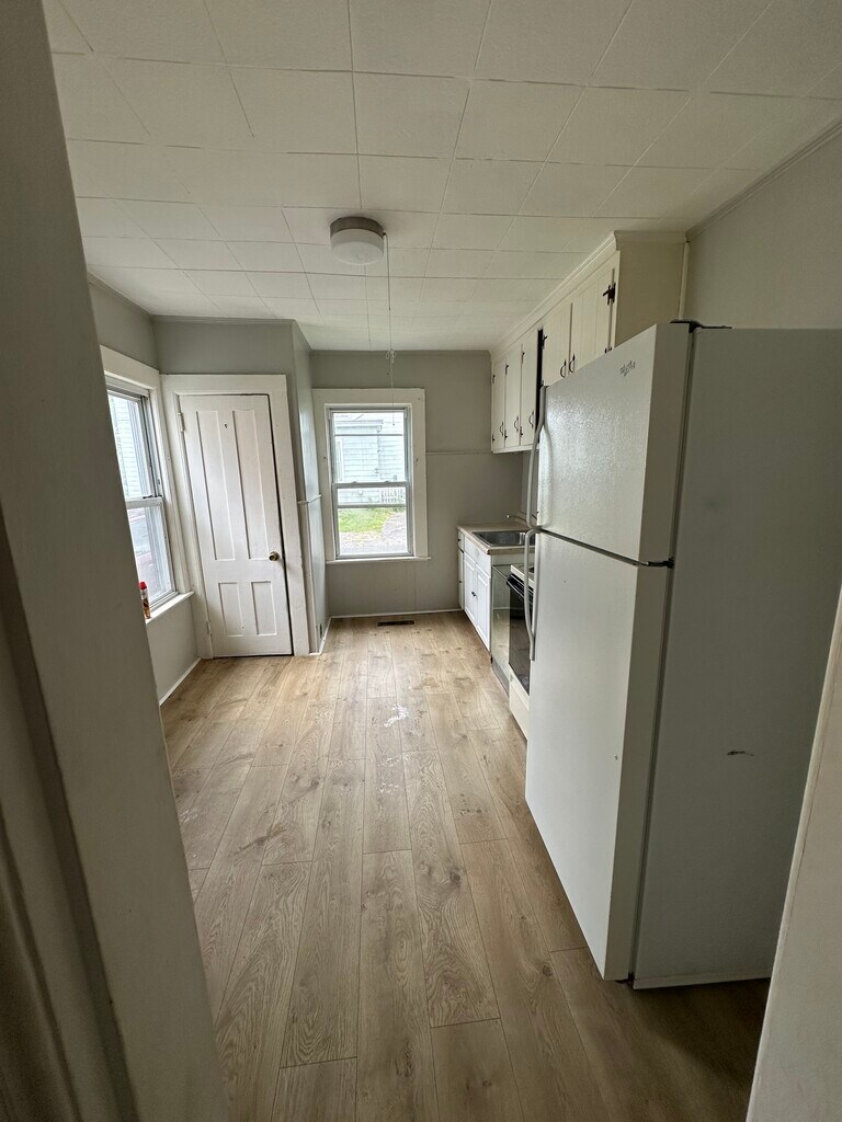 Offstreet parking private basement with laundry facility hook ups…. recently remodeled with gray and white paint vinyl planking floors and new carpet on the second floor bedrooms. This unit also has a third floor for storage. There are two additional rooms. Washer and dryer hook ups are in the basement also more storage. has its own private parking driveway.