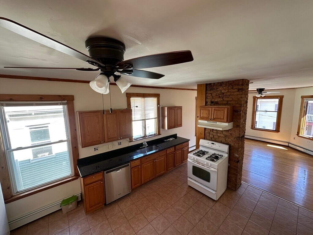 Fantastic 4-bedroom 2-bath apartment on the top floor of a 3-family building. Located on the corner of Sachem street at Calumet Street, this is close proximity to schools, grocery, public transit and so much more! The unit is a bi-level (2-floors) that make up the 3rd and 4th floors. The main level (3rd floor) offers 2-bedrooms, a living room, separate kitchen, and a fully bathroom + hallway access to the private rear deck. The 4th floor offers 2 additional bedrooms, a flex space for book nook, home office, etc, a 3/4 bathroom (toilet, vanity, and tile shower), laundry machine and a mechanical closet. The 4th floor also has a private deck easily accessible from the top of the stairs. The hardwood floors throughout were just refinished. Brand new paint and two new ceiling fans in the kitchen and living room. Kitchen appliances include a gas stove, full sized dishwasher, sink, disposal, and fridge. The unit has been professionally cleaned and ready for move-in! Available 10/1 or 11/1. 3