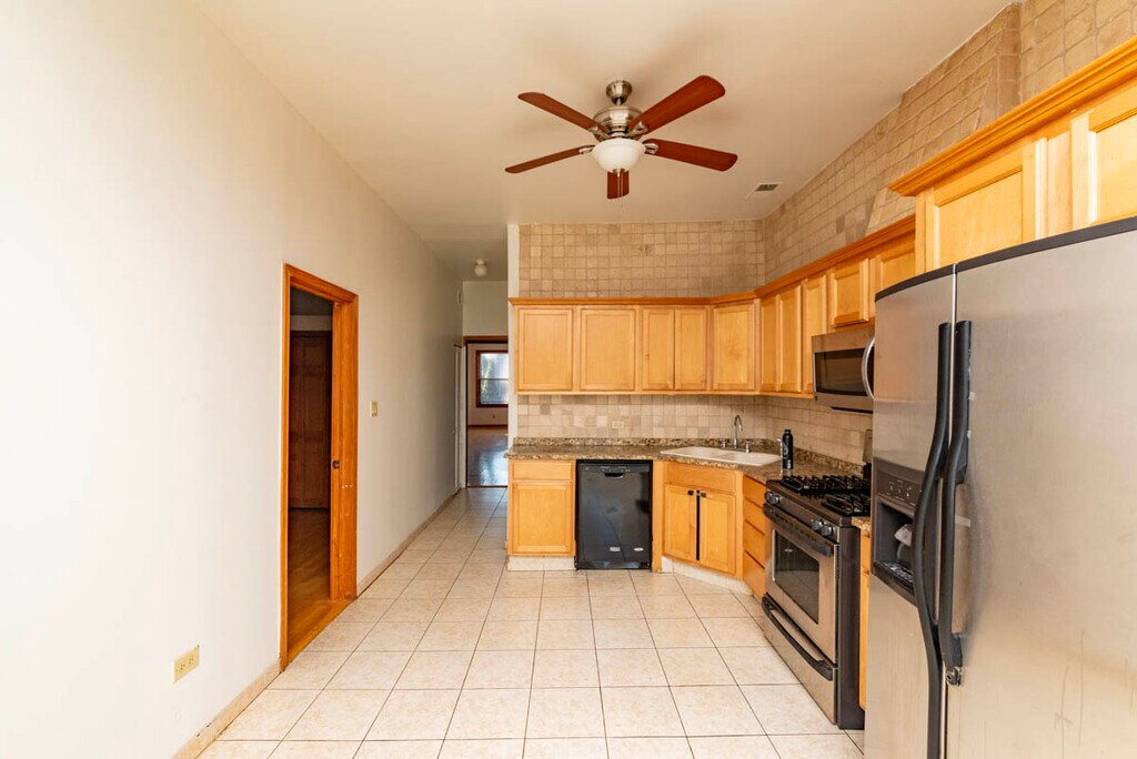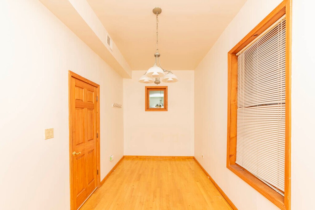 Primer piso en un edificio de ladrillo de tres pisos en una calle bordeada de árboles. La unidad cuenta con una sala de estar con moderna chimenea decorativa y el comedor adyacente cuenta con una cabaña incorporada. Moderna cocina con encimeras de granito y electrodomésticos (estufa, lavavajillas, microondas, refrigerador puerta a puerta con máquina de hielo y agua), además de lavandería y aire acondicionado central, y baño con lavamanos de pedestal, bañera de hidromasaje y armario de ropa de cama. Las puertas corredizas de vidrio de la parte trasera conducen a la cubierta muy grande. A poca distancia de The 606, y convenientemente ubicado cerca de la parada de Western Blue Line y de todos sus restaurantes, tiendas y cafés favoritos de Humboldt Park, Logan Square, Bucktown y Wicker Park.