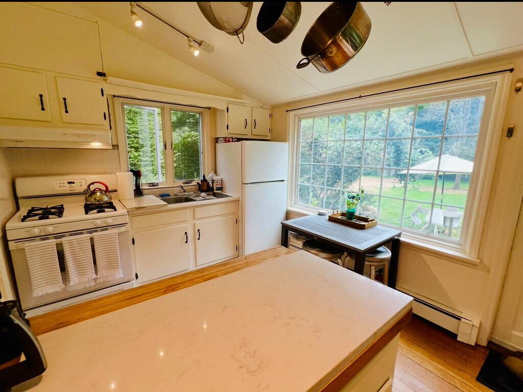 ALL FURNISHED/ALL INCLUSIVE/FLEXIBLE LEASE FOR ANYONE IN TRANSITION, SHORT/LONG TERM TENANTS STARTING OCTOBER 1st 2025 Quaint and Charming tastefully furnished and all inclusive cottage with wood burning stove, cathedral ceilings, 1 bedroom with queen size bed, 1 bathroom and 1 additional upstairs loft bedroom with 2 twin beds. Includes all utilities such as electricity, gas heat, internet, Hulu Live TV, trash removal, water, landscaping, and snow removal. 2 parking spaces and washer/dryer. This cottage is located on the North Stamford/New Canaan Border, 5 min from shopping, Sterling Golf, Italian Center, supermarkets, houses of worship etc…. Super convenient to everything including train stations and Merritt Parkway!