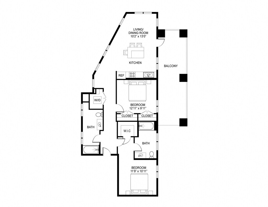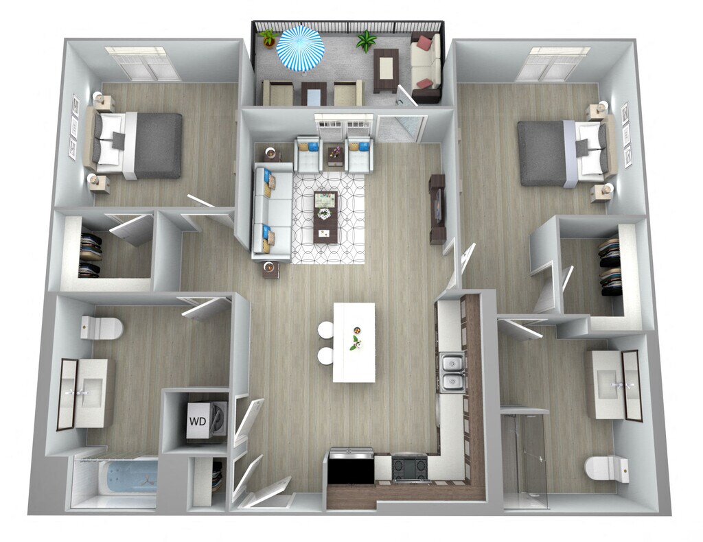 Modelo de apartamento: C7Llame para Precios2 Dormitorios, 2 Baños, 1114 sq ftNo Disponible![]()