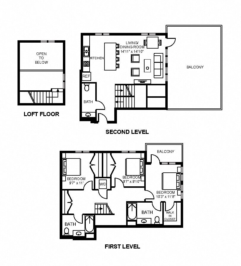 Modelo de apartamento: A1-Live/Work UnitLlame para Precios1 Dormitorio, 2 Baños, 1470 sq ftNo Disponible![]()