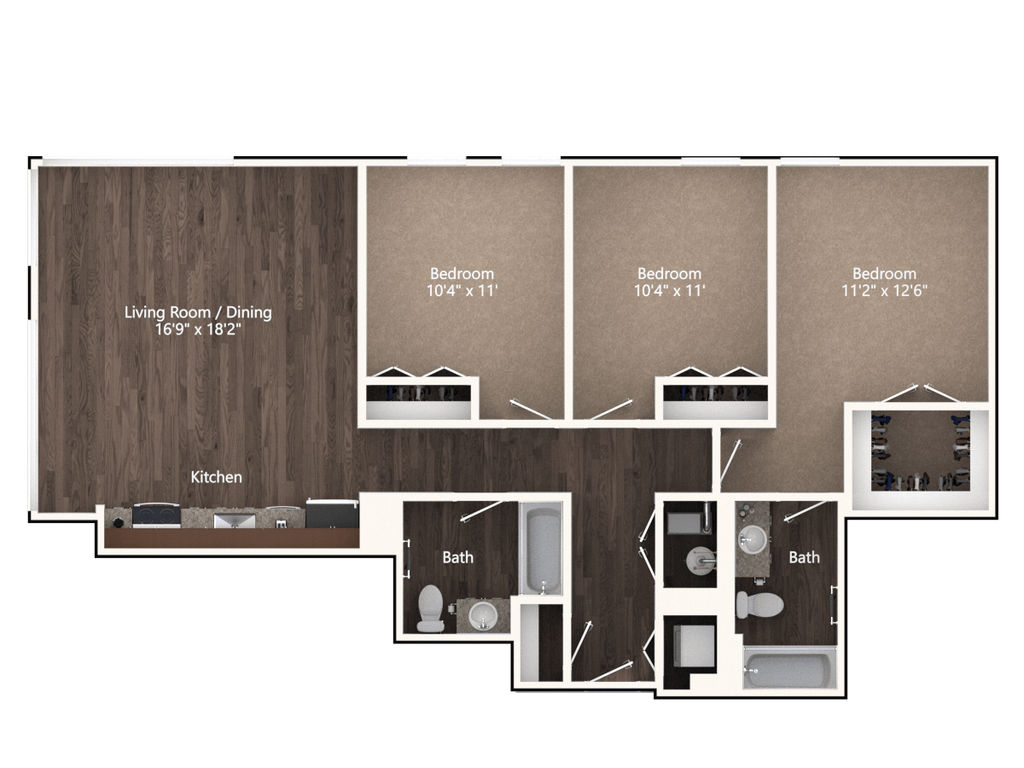 Modelo de apartamento: B3Llame para Precios1 Dormitorio, 1 Baño, 670 sq ftNo DisponibleLos planos de la planta son una interpretación artística. Todas las dimensiones son aproximadas. Los tamaños o el detalle del producto real y sus especificaciones pueden variar. No todas las características están disponibles en todos los hogares para rentar. Los precios y la disponibilidad están sujetos a cambios. El alquiler que se muestra es mensual. Se pueden aplicar ciertos cargos, por ejemplo, entrega de paquetes, recolección de basura, agua, servicios, etc. Depositos varian. Consulta a un representante para conocer detalles.