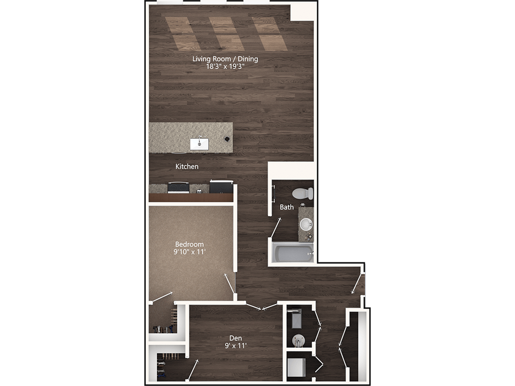 Estudio, 1 Baño, 531 pies²Galería del Modelo