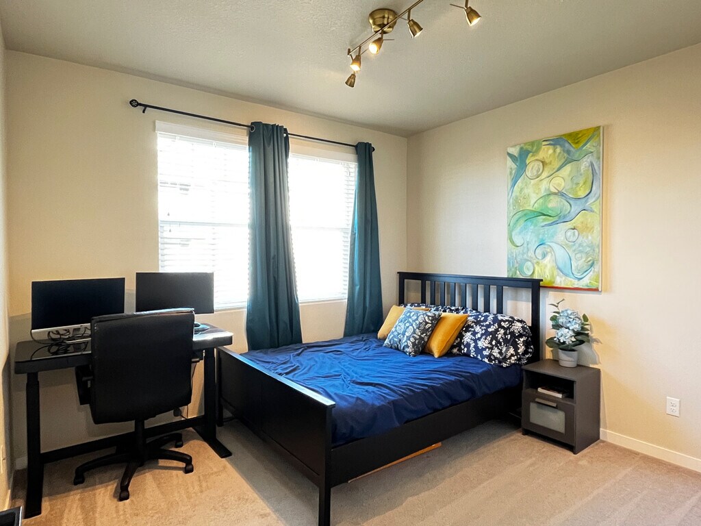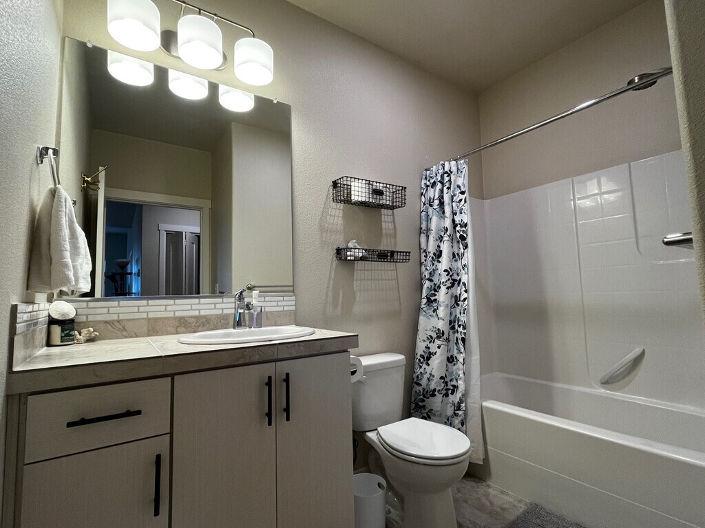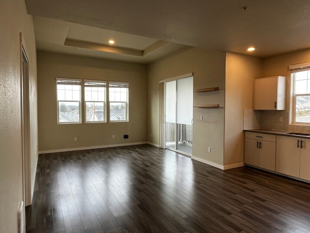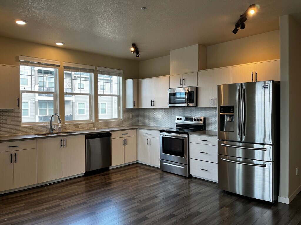 This stunning top-floor condo in the sought-after Veridian at River Terrace community is move-in ready and waiting for you! Enjoy an abundance of natural light in this modern end unit. Features include vaulted ceilings, stainless steel appliances, quartz countertops, an open floor plan, a covered deck, a single-car garage with an additional parking spot, and an in-unit washer-dryer. The primary suite includes a bathroom with a walk-in closet The community amenities include a fitness center, swimming pool, playground, BBQ areas, bike storage, workspace, bocce court, and walking distance to a dog park. Live within walking distance of Mountainside High School and Progress Ridge Shopping Center. Multiple lease lengths are available. The renter must pay a $40 application fee. Furniture is not included. Rent includes water, sewer, and garbage. Pets are welcomed with a $250 pet deposit. Contact us to schedule a tour and get the application process started. The renter pays for electricity and internet separately.